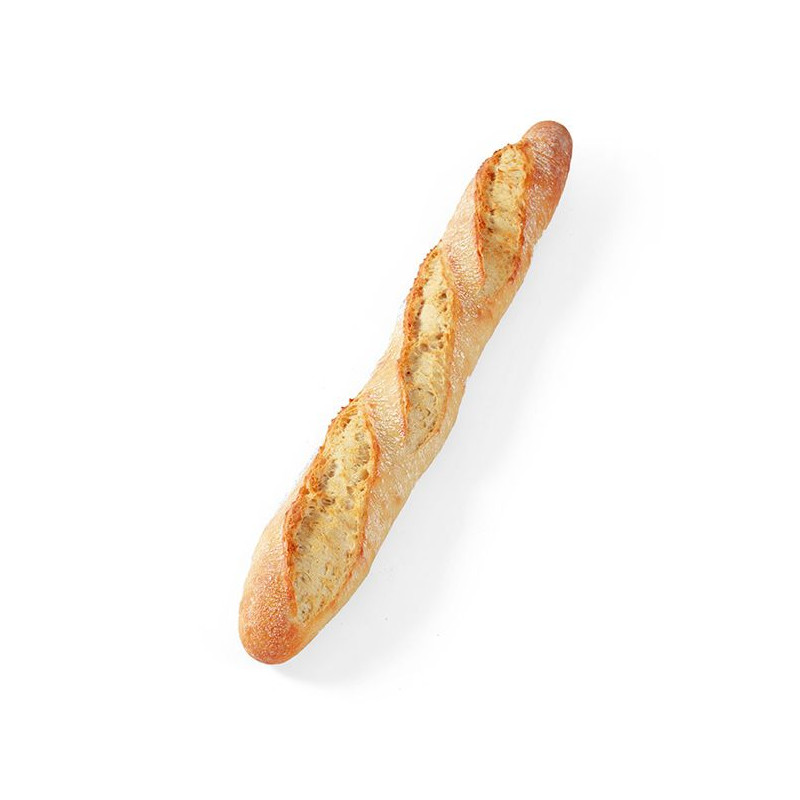 This classic Poolish white baguette offers a crisp golden crust with a soft, airy interior. Its mild fermented flavor enhances the natural sweetness of the wheat. Ideal for gourmet sandwiches or a simple cheese pairing.